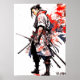 Samurai Spirit: Dynamic Japan Watercolor Art Poster