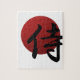 The Japanese Kanji script symbol for the word samurai against a red sun adds oriental flare to this creative Asian design.