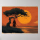 Samurai Under Sunset Tree in Traditional Japanese Poster