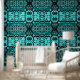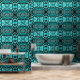 Teal bohemian dark retro modern mcm bungalow wallpaper