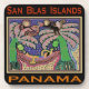 Kuna Indian mola, tropical islands, man in hammock, island monkeys, palm trees, San Blas Islands, Panama, Virginia Vivier, Vagabond Folk Art, black red blue, yellow orange green.