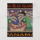 Kuna Indian mola, tropical islands, man in hammock, island monkeys, palm trees, San Blas Islands, Panama, Virginia Vivier, Vagabond Folk Art, black red blue, yellow orange green.