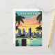 A vintage-style illustration of the San Diego skyline featuring a prominent seagull in the foreground, sailboats on the water, and a warm, sunset-like sky.