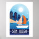 Beautiful San Diego California artwork showing a vintage beach summer scenery with the amazing landscape of the city. Great gift idea and souvenir.
