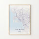 San Diego Pastel Map Print Poster Wallart Gift