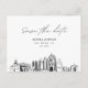 Modern San Diego black and white save-the-date postcard invitation on matte paper. The front showcases a stunning sketch, setting the perfect tone for your wedding day. Add custom text to make it your own. Enter the Zazzle design tool for additional design customisations. Automatically comes on matte paper. Adjust to semi-gloss if you prefer.