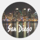 San Diego California Skyline at night from the water on this photo commemorative sticker. Celebrate a place that you love.