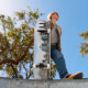 The skyline of San Diego with water in the front and cloudy blue sky in the background.