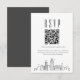 A minimal wedding rsvp QR code card featuring a stylised skyline representing the sunny city of San Diego. Replace the QR code with one featuring a link to your website to help make responding to your wedding event easier for your future guests.