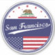 San Francisco car sticker, San Francisco luggage sticker, San Francisco travel sticker, San Francisco bumper sticker, San Francisco sticker rounded shape.