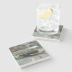 The coasters are gorgeous, a quality feel and heavy weight. They look like a precious archeological find. A rustic stone juxtaposed with a modern floral black and white print. I like the way the print goes slightly imperfect on the cut stone edges giving them a kind-of natural beauty.