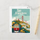 Capture the iconic charm of San Francisco with this vintage travel poster-style image. A classic red cable car gracefully travels the city's streets, offering a glimpse of the bustling city. In the background, the majestic Golden Gate Bridge stands tall against the backdrop of a sunny day, adding a touch of timeless beauty to the scene. Whether you're a fan of vintage travel aesthetics or simply drawn to the allure of San Francisco's landmarks, this artwork is sure to evoke a sense of nostalgia and wanderlust. This vintage design will bring back memories of classic travel posters from a bygone era. Customise this save the date card to make it uniquely your own so that it's ideally suited for your special day.