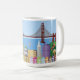 San Francisco City Landmarks with Golden Gate Bridge and Sailboats Colourful Illustration and Drawing Mug