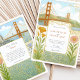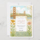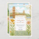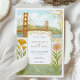 Capture the romance of the city by the bay with this exquisite Art Nouveau-inspired wedding invitation. This unique design features a beautifully detailed illustration of the iconic Golden Gate Bridge and the San Francisco skyline, framed by elegant, swirling floral motifs. Delicate California poppies, irises, and other botanicals add a touch of natural beauty and colour. The vintage, storybook aesthetic makes it perfect for a sophisticated city wedding or for couples who share a special connection to Northern California. The reverse side offers a coordinated space for "The Finer Details," ensuring your guests have all the information they need. All text is fully customisable to reflect the details of your special day.