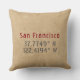 Modern, urban design features latitude and longitude map coordinates of San Francisco, California on brown distressed cardboard background