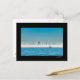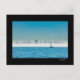 Postcard featuring a yacht sailing on San Francisco Bay with the city skyline emerging from the mist behind.