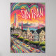 This vibrant psychedelic San Francisco artwork transforms the iconic cityscape into a mesmerising rainbow wonderland. Featuring the famous Painted Ladies Victorian houses, Golden Gate Bridge, and colourful cable cars against swirling kaleidoscopic skies, this retro-inspired design captures the city's creative spirit and 1960s counterculture heritage. The flowing rainbow patterns and bold typography create a dreamy, surreal interpretation of San Francisco's most beloved landmarks. Perfect for adding groovy, colourful energy to any space with its eye-catching blend of urban architecture and abstract art. generativecontent.