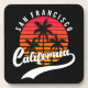 San Francisco coaster with a retro design that features a sunset and palm trees on black background (customisable bg colour). This design also has California in a handwritten font with a swash tail glyph for that stylish retro look. These coasters are just for you if you are from San Francisco or you can get as a gift or souvenir for someone.