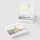 The coasters are gorgeous, a quality feel and heavy weight. They look like a precious archeological find. A rustic stone juxtaposed with a modern floral black and white print. I like the way the print goes slightly imperfect on the cut stone edges giving them a kind-of natural beauty.