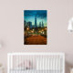 Evening lights glow along the San Francisco waterfront as the Transamerica Pyramid rises into a dramatic twilight sky. A bold cityscape photography print for modern interiors and urban art lovers.