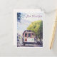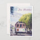 This postcard features a modern photo of a San Francisco Trolley and view of Alcatraz