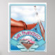 San Francisco, USA, travel poster print featuring the famous bridge and a pink american car in a retro 1950s style logo.