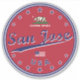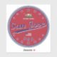 San Jose car sticker, San Jose luggage sticker, San Jose travel sticker, San Jose bumper sticker, San Jose sticker rounded shape red version.