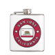 The flask itself is fine. It’s a cheap flask, obviously bought in bulk, however am prepared to overlook that. Given that it is a personalized item, I would have liked to have seen gift boxing instead of the generic packaging. Terrible printing, and/or quality. It’s a cheap, tacky vinyl. It is not cut straight and is also applied in a way that it is overhanging the bottom, causing the glue to catch on items and it will eventually roll and tear, damaging the wrap.