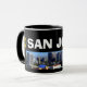 San José is called the "Capital of Silicon Valley" and is the 10th largest city in the United States and 3rd in California after Los Angeles and San Diego. It is also the oldest civil settlement and first capital of Calfornnia! Your mug has a panormaic picture of downtown San José underneath a large San José. On either side is the city seal. All of this on a black background makes the mug very classic and clean look. The mug can be customised: colours, text, size,design, and price. For more items liks this, visit my store at: www.zazzle.com/azoran* and then browse the California category.