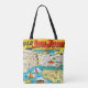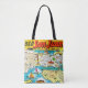 A vintage, very colourful postcard map of San Juan, Puerto Rico repurposed all over a wonderful shoulder tote.