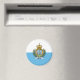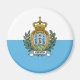 The San Marino flag is a horizontal bicolour with the coat of arms in the middle. The used colours in the flag are blue, white. The proportion of the San Marino flag is 3:4. The Flag of San Marino was adopted in 1862. The first use of the current flag design was in 1797. The last change to the current San Marino flag design was in 2011.