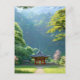 In the midst of a lush green forest, a small shrine stands on the edge, its intricate details and serene beauty harmonising with the natural surroundings. The peaceful aura of the woods is magnified by the presence of this holy place, adding a touch of mysticism to the already enchanting landscape.