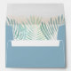 Watercolor palm branches and a sandy wash with beach blue accents. A modern, elegant yet breezy design.