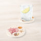 Sand and seashells round sandstone coasters for your beach theme party. Decorated with red fan coral, nautilus, starfish, and orange scallop seashell. Matching paper plates, napkins, or other styles of coasters and napkins are also available. Choose from marble or travertine.