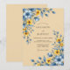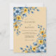 A warm tan background sets the stage for vibrant watercolor florals in shades of steel blue and golden yellow. Delicate cosmos and petite meadow wildflowers are intertwined with soft blue foliage to create a serene, pastoral atmosphere. This aesthetic captures the essence of a breezy spring or summer day with its airy and cheerful palette.