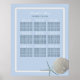 This seating chart is perfect for any couple planning an elegant beach wedding. The design features a creamy sand dollar and a light blue starfish with a sky blue background. The design is finished off with a delicate sand colour border. The simple and fresh design can be personalised to suit your special event and will be the perfect table plan for any beach themed party, including; bridal showers, engagements, wedding showers, birthday parties and much, much more.