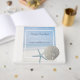 This guest book is perfect for any beach themed wedding. The design features a light blue starfish and a white sand dollar on a blue beach backdrop which is simply perfect for any beach celebration and is complete with editable wording. Easily customise this design with your special event wording and be sure to include the matching items for that very special finishing touch.