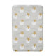 A white sand dollar and golden brown starfish are repeated on a background of faded driftwood. This design is perfect for a rustic beach house, and can bring a beach theme into your own bathroom.