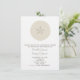 A simple yet elegant beach wedding rehearsal dinner invitation featuring an illustration of a sand dollar at top centre. Personalise the text with details of your occasion.