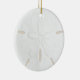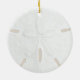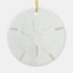 Sand dollar Christmas tree ornament. A full, natural white sand dollar image is printed on both sides of round ornament.