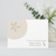 A wedding rsvp featuring an illustration of a sand dollar on front at top right.