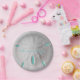 A beach sand dollar in white and turquoise. Perfect for a beach themed party or crafting.
