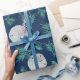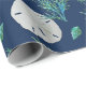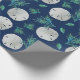 Sand dollars and sea coral wrapping paper on a roll. Realistic white keyhole sand dollars make a pattern along with blue-green coral and seashells on a dark navy blue background. Perfect for celebrating an adult birthday, or wrapping wedding gifts.