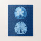Sand Dollar Sea Life Print, Indigo Blue and White Jigsaw Puzzle