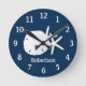 Sand Dollar Starfish Coastal Navy Blue Personalise Round Clock