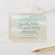 Two sand dollars, beach wedding invitation postcard to keep the planning simple and economical. All text goes on the front using templates with modern, handwritten script for names, and printed font style. Include reception info and wedding website as needed. Have guests reply online, and save money using this smaller postcard invitation - which needs less postage! Text is blue-green colour. Reverse is blank, with a wet beach background and two little sand dollars at the bottom. Hand-write addresses, or use address labels.