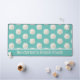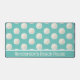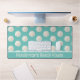 Beach themed desk mat done in robin's egg blue, with a pattern of sand dollars. A text area, across the bottom, has custom white text ready to personalise. Perfect for your beach cottage or beach based business.