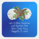 Tropical Christmas envelope seal in pretty gradient blue with sand dollars, starfish and printed return address. Include three or four lines for the address and choose round or square shape in two sizes.