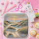 Watercolor footprints in beach sand dunes with pampas grass sunrise over the ocean