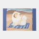 A sweet design for summertime decor and wear. Little chow is getting a tan on the beach with a blissful expression on his face.